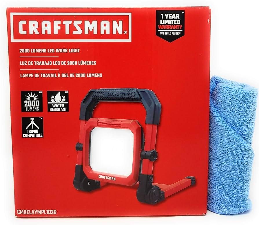 Craftsman LED Portable Work Light, 2000 Lumens Bundle and Microfiber Towel