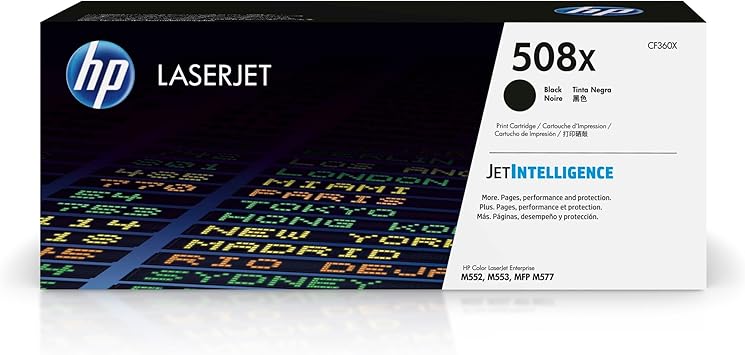 HP 508X Black High-yield Toner Cartridge | Works with HP Color LaserJet Enterprise M552, M553, HP Color LaserJet Enterprise MFP M577 Series | CF360X