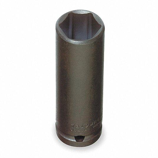 PROTO IMPACT SOCKET: 1/2 IN DRIVE SIZE, 19 MM SOCKET SIZE, 6-POINT, DEEP, BLACK OXIDE MODEL# J7319MHT