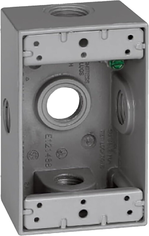 SIGMA ENGINEERED SOLUTIONS 14251-5X Metal Electrical Outlet Box, Weatherproof, Easy Mount Plug and Receptacle Protector, Gray, (5) 1/2-Inch Holes, 1 Gang Box with Side Entry.