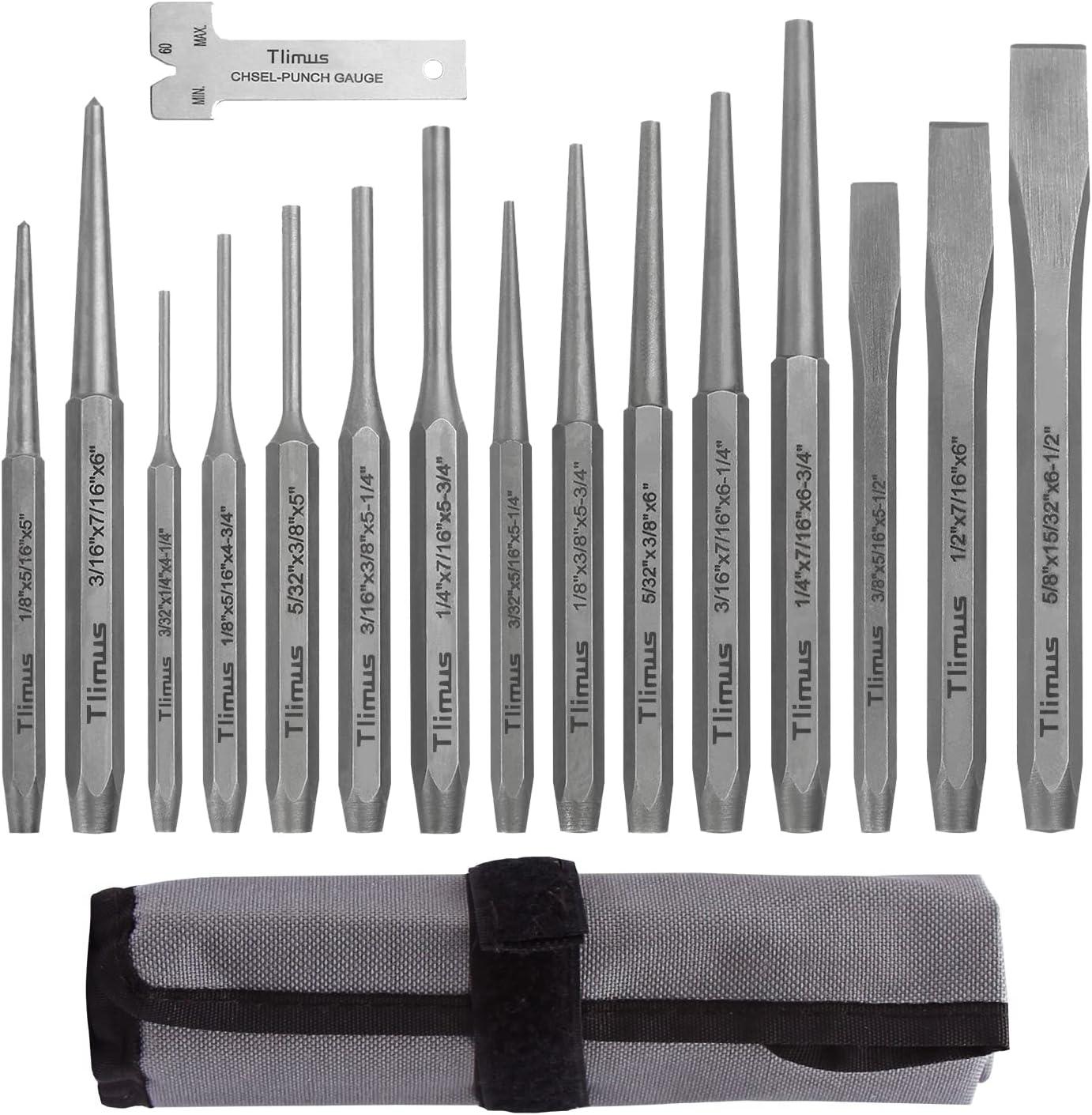 TLIMUS 16 Pieces Punch and Chisel Set, Including Taper Punch, Cold Chisels, Pin Punch, Center Punch
